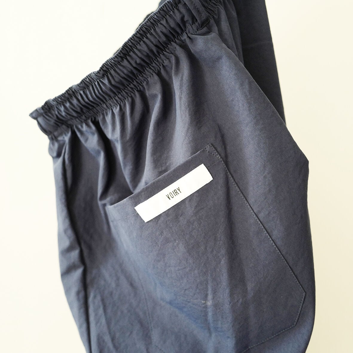 汚れやシワがつきにくく、静電気が起きにくいちょっと変わったポリエステル素材を使ったゆったりとしたVOIRYのバルーンパンツです。